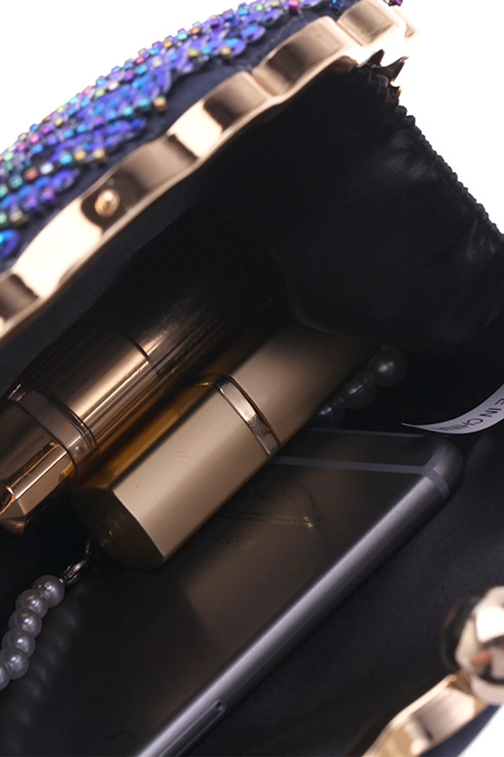 Embrayage En Forme De Coquille Perlée Vert Paon