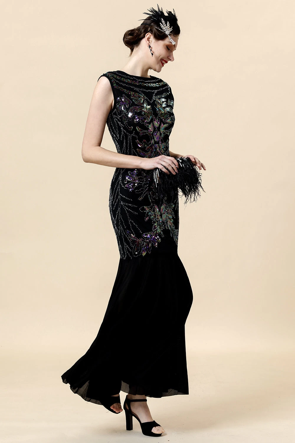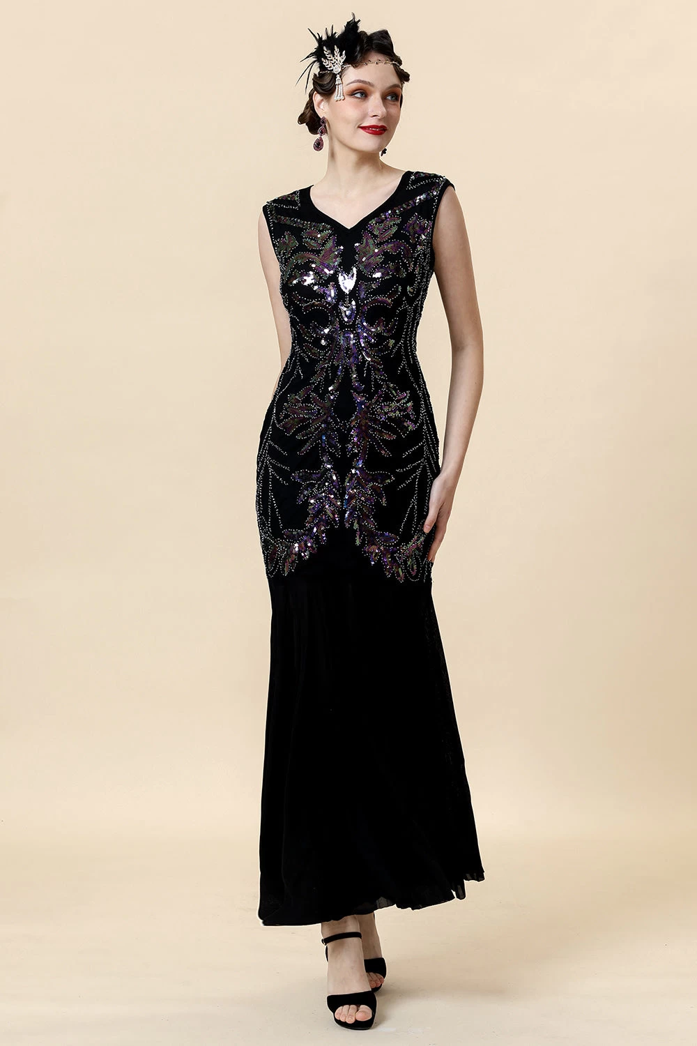 Match classique: Pair this 1920s dress with special accessories will make you shining in a crowd.