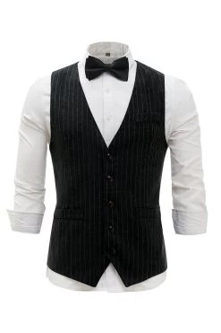 Gilet Pour Homme à Rayures Noires Avec Ensemble D’accessoires 5 Pièces