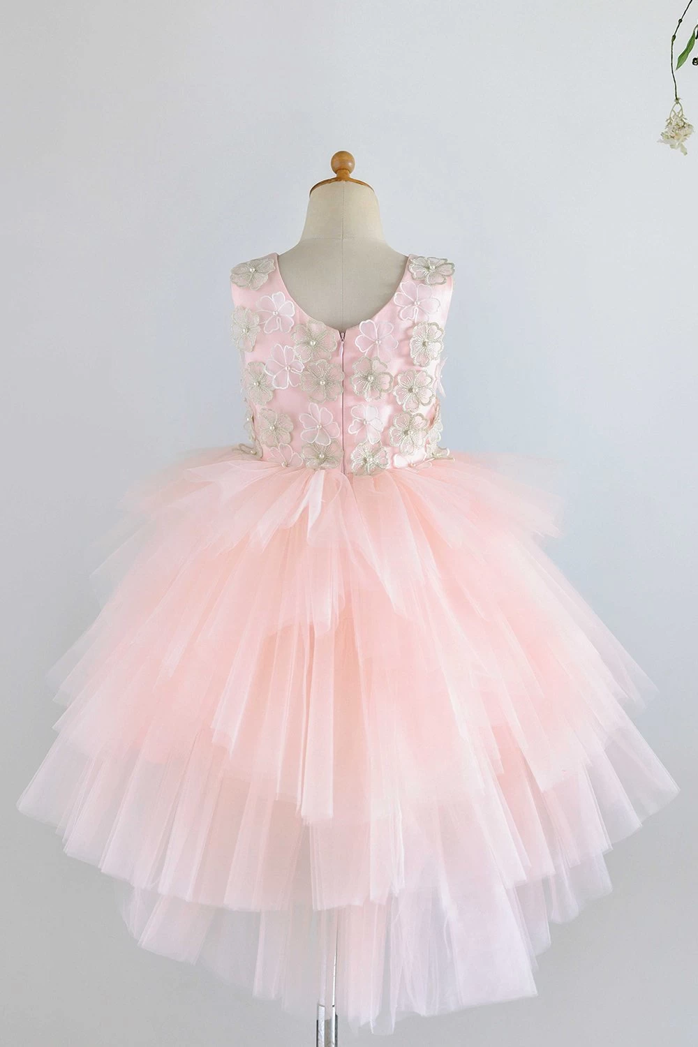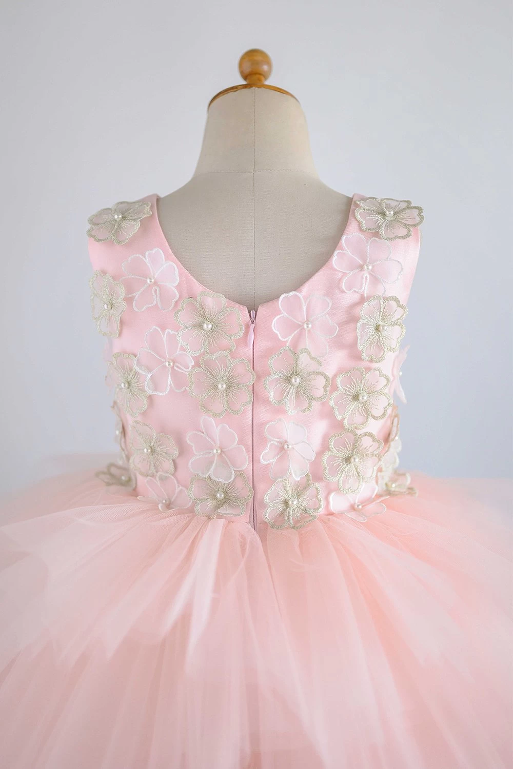Jewel Pink Tulle Flower Girl Robe Avec Appliques