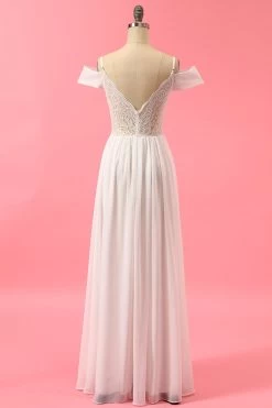 Robe De Demoiselle D’Honneur Longue En Mousseline De Soie Blanche