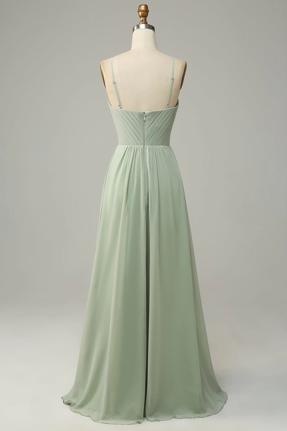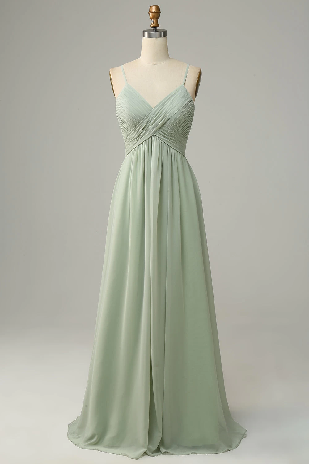 Robe De Demoiselle D’honneur Sans Manches à Bretelles Spaghetti Dusty Sage