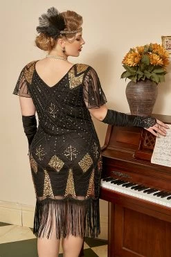 Doré Paillettes Plus Taille 1920s Gatsby Robe Avec 20s Acessories Set