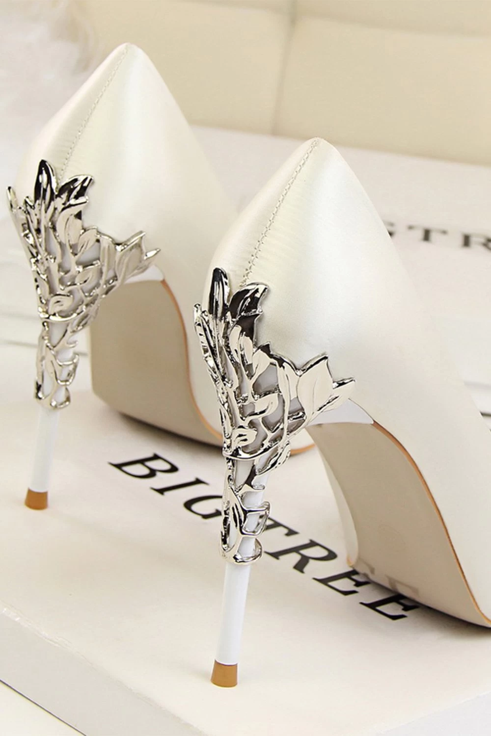 Talons Aiguilles En Métal Peu Profond De Bourgogne