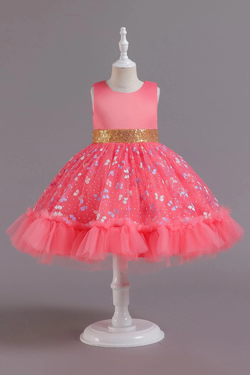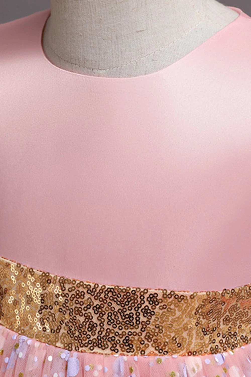 Une Ligne Robe De Soirée Fille Rose à Col Bijou Avec Appliques